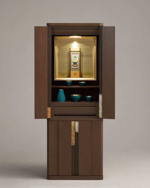 gendai021_2_1 Published 2017年11月25日 at 640 × 800 in gendai021_2_1 ← Previous Next → 現代仏壇 国産 材質 ニレ・タモ・真鍮 高 120cm 幅 43・4cm 奥 40cm お部屋になじみやすい外観。木と真鍮の組み合わせがシックな印象。 内部の金色スペースがお祀りの対象を引き立てます。