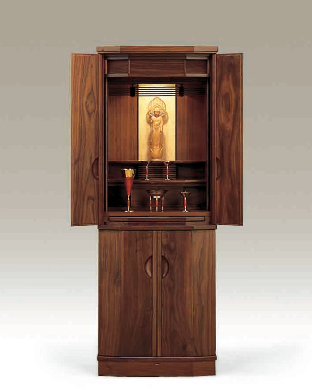 gendai023_1_1 Published 2017年11月25日 at 640 × 800 in gendai023_1_1 ← Previous Next → 現代仏壇 国産 材質 ウォールナット 高 150cm 幅 56cm 奥 46・5cm しっとり落ち着いたウォールナットの存在感。 たっぷり収納、和室・洋室どちらにも合い、人気商品です。