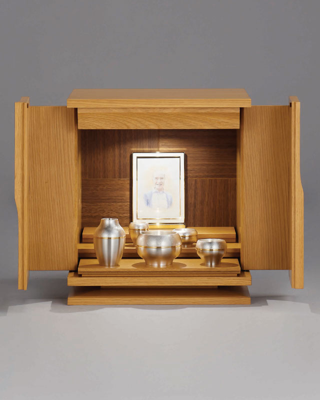 gendai4_1_1 Published 2017年11月21日 at 640 × 800 in gendai4_1_1 ← Previous Next → 現代仏壇 国産 材質 ホワイトオーク 高 37・9cm 幅 34・2cm 奥 34・8cm 四つ葉のように貼りあわせた扉を開くと、解放的な広がりを感じます。