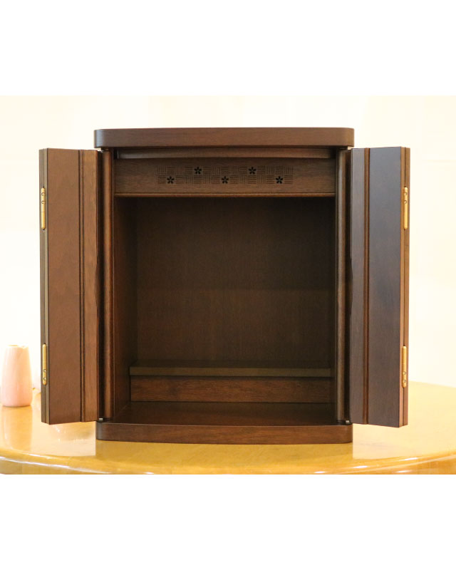 tennaiuwa011_1_1 Published 2017年12月7日 at 640 × 800 in tennaiuwa011_1_1 ← Previous Next → 国産 材質 ウォールナット 高 39cm 幅 33cm 奥 27cm 照明はナツメ球を仕様 欄間に格子と桜が彫ってありアクセントになっています。 定価 ¥68,800+税